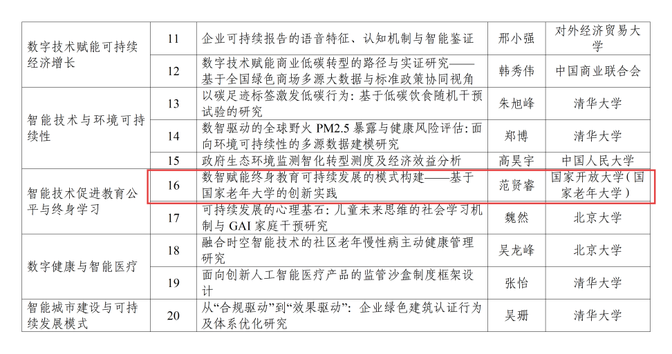 国家开放大学(国家老年大学)课题入选首届“可持续社会价值全球开放研究计划”