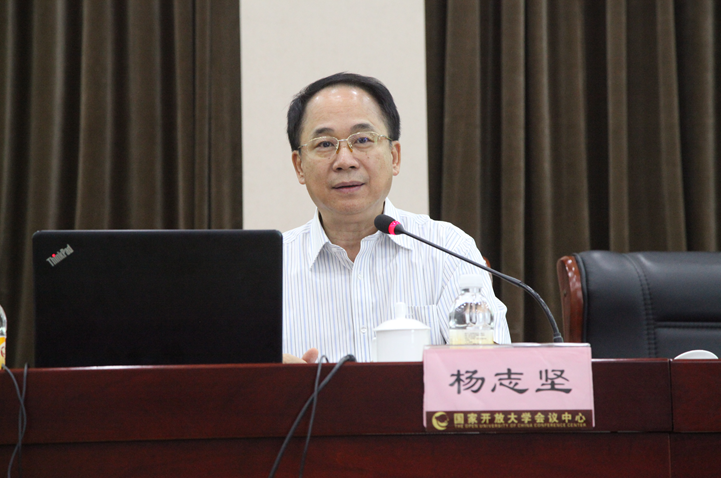 杨志坚以《国开的前世今生》为主题做首场报告,他从近代大学与开放大学、中央广播电视大学的诞生、中央广播电视大学的历程、国家开放大学的转型探索、世界开放大学的第五种模式等5个方面介绍了学校的历史和发展现状。杨志坚指出,中央广播电视大学是中国改革开放的先驱者和见证者。40年来,学校发展经历了初创期、定型期、低迷期、探索期和转型期。国家开放大学揭牌以来坚持扎根中国大地办教育,不忘初心、砥砺奋进。当前全体国开人正以党的教育方针和国家教育规划纲要为指导,以《国家开放大学建设方案》为目标,围绕“1314”工程确定的各项目标任务,扎实推进改革建设发展。
