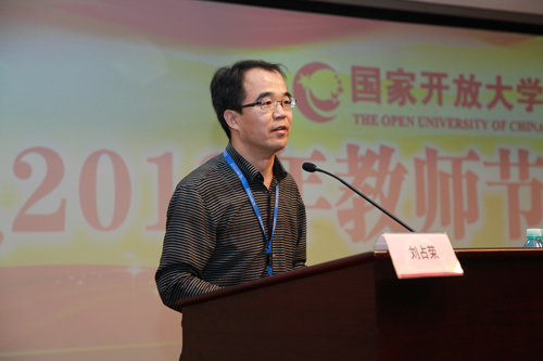 “2013年北京市优秀教师”、外语学院院长刘占荣发表感言。