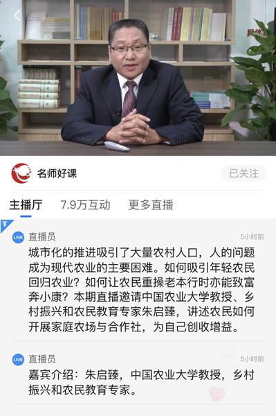 “粮•食安全大家谈”直播课收官 收看量达到320万次