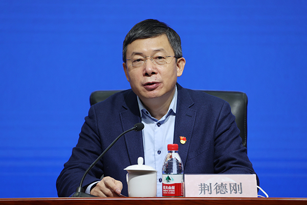 荆德刚同志指出,2021年是“十四五”开局之年,也是国家开放大学全面转型发展的重要一年,学校将坚决以习近平新时代中国特色社会主义思想为指导,全面贯彻党的十九大和十九届二中、三中、四中、五中全会精神,进一步贯彻落实孙春兰副总理来校调研时的重要指示精神,在教育部党组坚强领导下,坚持稳中求进总基调,把握新发展阶段、贯彻新发展理念、构建新发展格局,扎实工作,狠抓落实,坚持加强党的领导不动摇、狠抓教育质量不动摇、推进“一体化”办学不动摇、服务全民终身学习不动摇,全力打造终身教育、在线教育、灵活教育、对外合作“四大平台”,以优异成绩庆祝建党100周年。