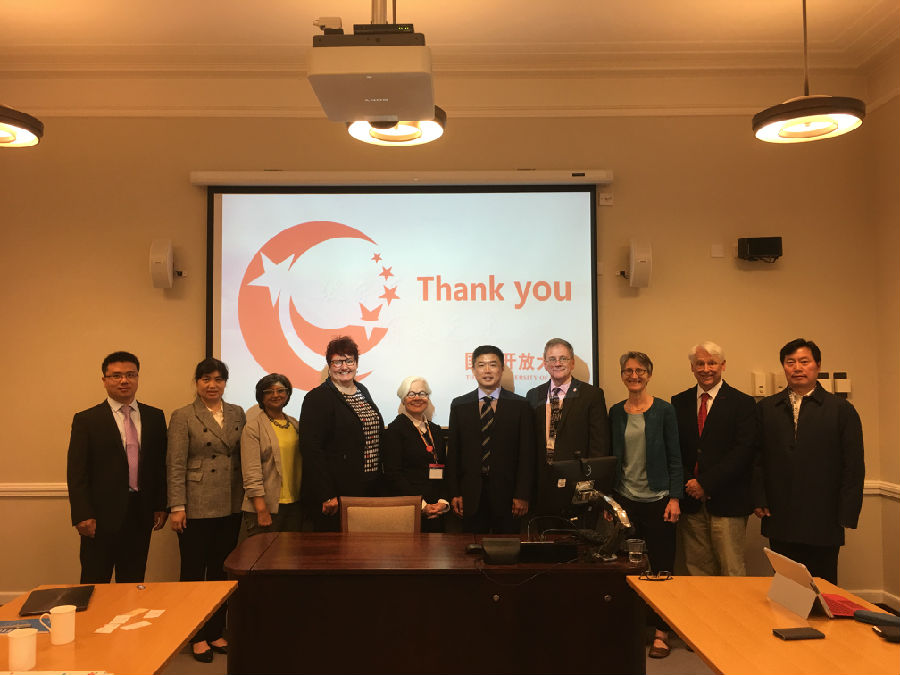 6月5日,代表团到访伦敦大学进行交流访问,伦敦大学副校长Mary Stiasny教授、远程教育中心主任Linda Amrane-Cooper博士、国际合作事务负责人Mike Winter先生及远程教育中心研究员Alan Tait教授等参加了接待活动。林宇副校长和Mike Winter先生各自介绍了学校的基本情况和国际业务,双方交流了对远程教育发展趋势的看法和办学经验。英方认为两校在远程教育方面有一定的相似性,有很大的合作潜力,表示今年将接收中国国家开放大学体系内的中英奖学金项目访问学者,在伦敦大学进行学习研究,并参与相关学术会议等交流活动。双方还探讨了教师培训(线上线下相结合、国内与国外相结合)、在线课程引进与开发及远程教育研究等领域的合作,并将在此次会谈的基础上进一步沟通具体合作方向,扩大两校合作。