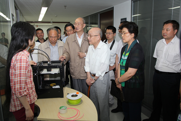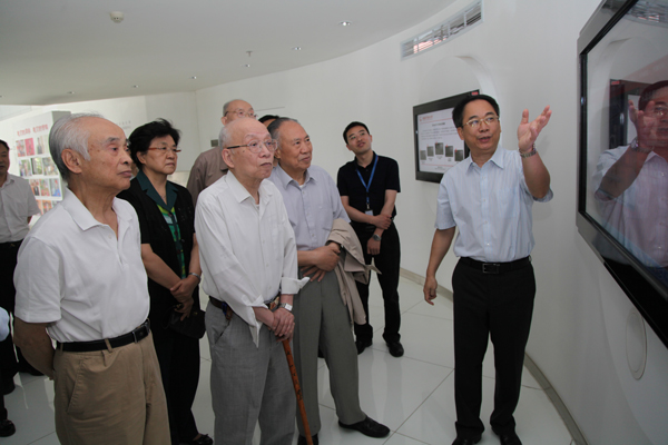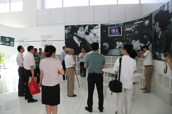 在国家开放大学校长杨志坚、党委书记李凌、校长助理刘臣的陪同下,老干部一行欣赏了《国家开放大学赋》,参观了“信息技术与教育的深度融合——从广播电视大学到国家开放大学”主题校史展,与南海电大等地云教室进行互联互通,考察了数字化学习资源、考试监控系统,观看了3D打印演示,了解了对外汉语教学、学分银行等情况。