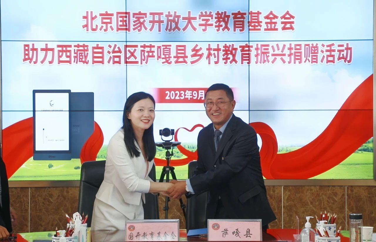 书香润乡村 教育助振兴——国家开放大学教育基金会向西藏自治区萨嘎县教育局捐赠1000台数字阅读器