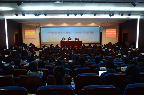 杨志坚从民主生活会前期准备情况、会议召开情况、整改方向和措施、教育部督导四组和鲁昕副部长的点评发言、下一步工作打算五个方面,全面通报了领导班子专题民主生活会情况。他指出,领导班子专题民主生活会贯彻习近平总书记指导河北省委常委班子专题民主生活会的重要讲话精神,聚焦“四风”突出问题,紧密联系思想、工作和作风实际,深入查摆问题,深刻剖析问题产生根源,明确今后努力方向和整改措施。在自我批评的基础上,五位领导班子成员开展坦诚的相互批评,直面问题,开诚布公,既善意指出问题和不足,又诚恳提出改进意见和建议。会议气氛严肃、热烈、认真、和谐,收到了帮助同志、增进团结、促进工作的效果。