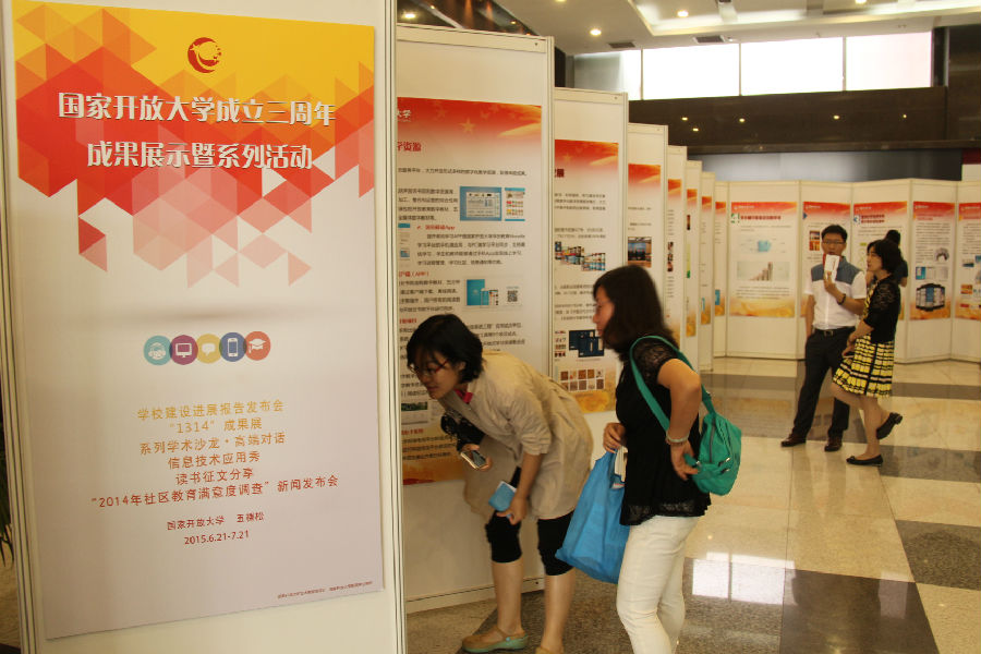 国家开放大学三周年成果展通过40块展板,主要围绕学校“1314工程”,从“六网融通”人才培养模式、教育信息化、办学组织体系、学分银行建设、非学历继续教育等7个方面,全面反映学校3年来的主要改革成就。成果展内容全、数据新,图文并茂、视觉效果好。
