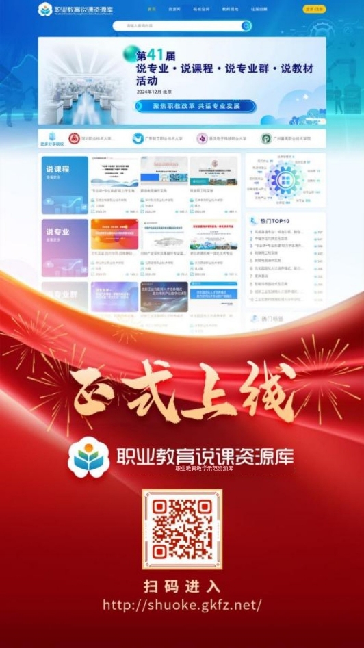 经过一年的设计开发、集成优化,说课资源库首批上线来自440所院校、1079名教师的优秀案例资源926个,全面覆盖41届“说课”活动,囊括说课程、说专业、说专业群、说教材、说场景、说示范课、说教学模式等七大类别。平台支持按产业、专业、课程、院校、教师等多维度精准检索,智能推荐关联资源,为教师教学改革提供实践参考,为教师成长发展提供便捷通道,为院校提高人才培养质量搭建展示交流平台。