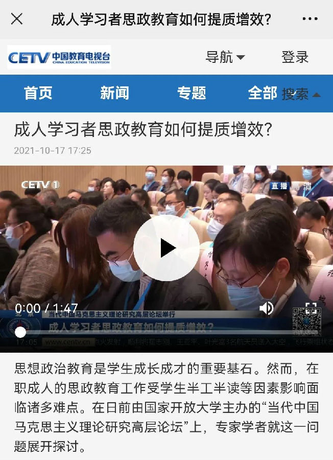【中国教育电视台】成人学习者思政教育如何提质增效?
