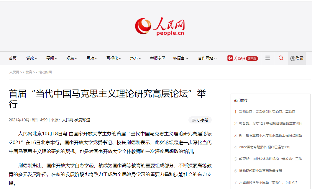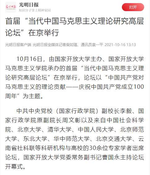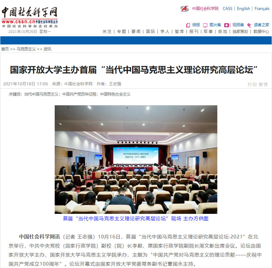 【中国社会科学网】国家开放大学主办首届“当代中国马克思主义理论研究高层论坛”