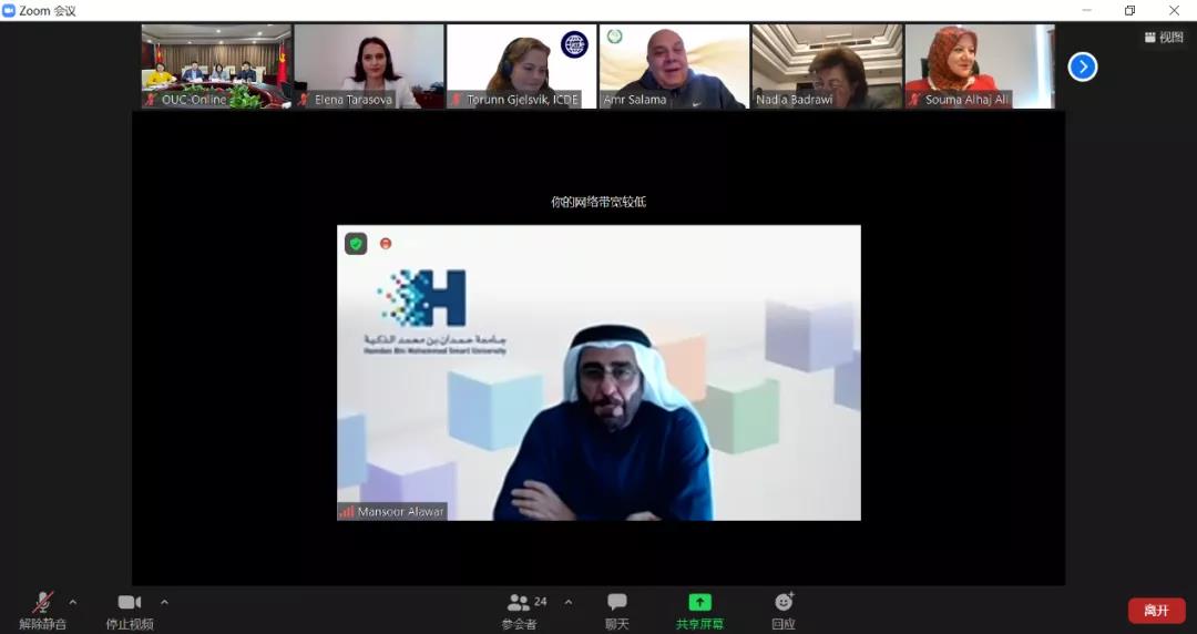 2022年1月10日,由阿拉伯联合酋长国哈姆丹·本·穆罕默德智慧大学(以下简称智慧大学)主办的“在线、开放、智慧和技术增强型高等教育基准框架和数据集联盟”(以下简称基准框架联盟)校长国际会议在线举行。国家开放大学副校长范贤睿应邀出席会议。