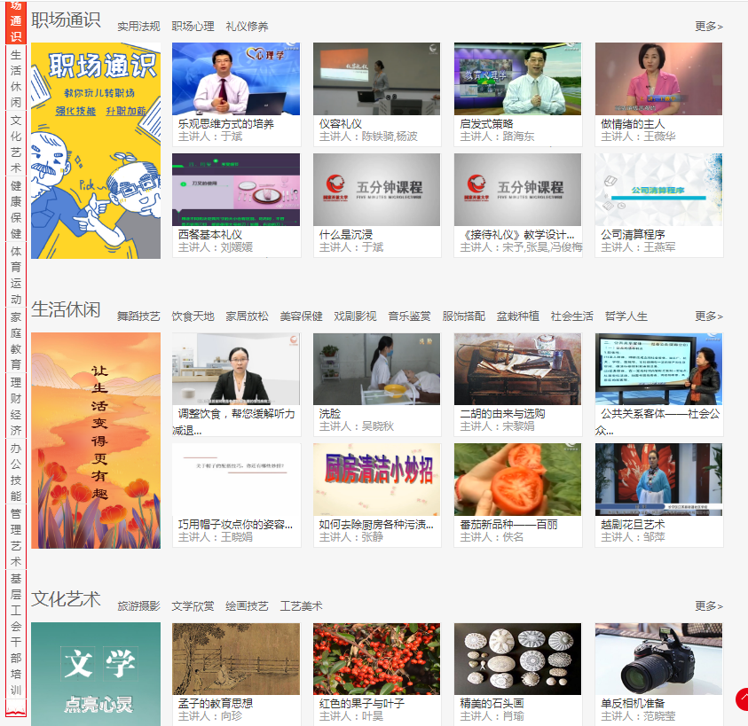 国家开放大学联合中国职工教育网推出“技能提升”“职工心理援助”“班组建设”和“基层工会干部”四个系列,共35门在线培训课程,课程融合“专家讲授、操作演示、模拟训练”于一体,为职工学员提供循序渐进、内容充实、环环相扣的教育培训服务。同时国家开放大学免费开放海量优质学习资源,满足了职工多元化的学习需求。优质的学习资源、详细的成果档案、专业的答疑服务为产业工人的”复工复产“提供了强有力的保障。