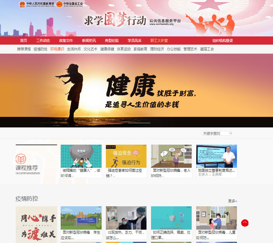 同时为缓解职工在疫情期间可能产生的精神压力和心理问题,求学圆梦公共信息服务平台新增防疫知识介绍,提供线上咨询心理服务,引导职工遵守疫情防控要求,养成卫生健康的生活习惯,学会自我调节放松,端正工作、生活和学习心态,筑牢抗击疫情的心理防线。