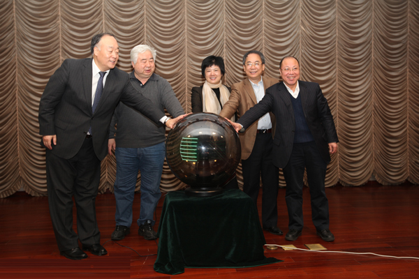 教育部职业技术教育中心研究所所长杨进,中国成人教育协会常务副会长刘志鹏,教育部职成司刘英处长,国家开放大学校长杨志坚,国家教育咨询委员会终身教育体制机制建设组专家组组长、教育部国家教育发展研究中心副主任杨银付(从左到右)开通国家开放大学学分银行信息平台及新版的门户网站