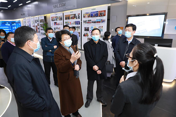 教育部、中国教科院相关职能部门负责人及国家开放大学领导班子成员参加了调研和座谈会。(摄影:翁建斌\诸葛寰宇)