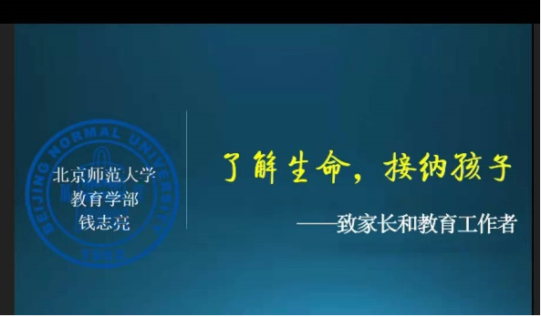 钱志亮教授以《了解生命,接纳孩子》为题,讲述了为什么要了解生命,并为我们揭开了生命密码,包括生命的偶然性、生命的目的性、生命的灵动性、生命的连续性、生命的传承性、生命的有限性等,并有针对性地提出了相应的教育命题。