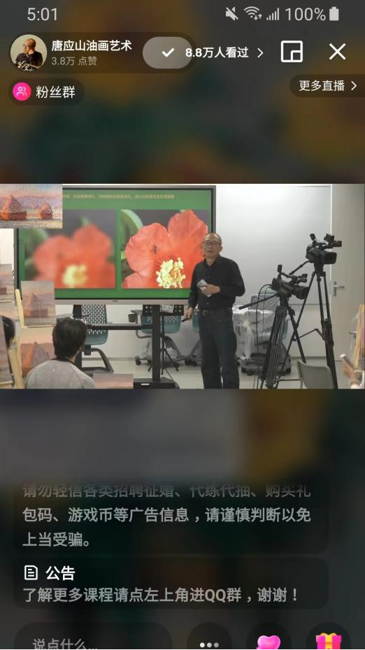 本期油画班是小规模线下培训带动大规模线上美育教学的有效实践,15名面授学员与11万名在线学员同步学习。在线直播精准的镜头切换,保障了收看效果,直播课得到了全国油画爱好者的广泛好评,大家对国家老年大学高质量的美育课程大加赞扬并深表感谢。
