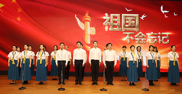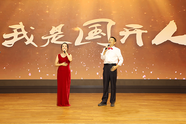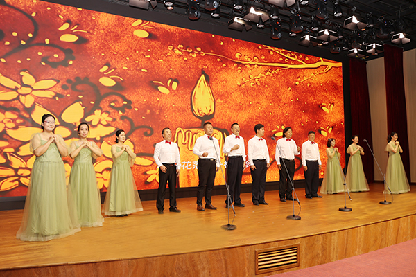 大会最后,学校教职工用歌声为教师节献礼。实验学院带来了小合唱《祖国不会忘记》,用嘹亮的歌声,展现了国开人为祖国远程开放教育事业进行奋勇拼搏的精神;学校合唱团演唱了歌曲串烧《好大一棵树》《感恩的心》《我们是光荣的人民教师》,用满怀深情的歌声歌颂光荣的人民教师。二重唱《我爱你国开》由学校特聘教授庞中华先生赋诗、社教部宋汶仪老师谱曲,由任岩和宋汶怡老师演唱,诗歌字字深情款款,句句情真意切,歌声悠扬动听,饱含了对国家开放大学的热爱。
