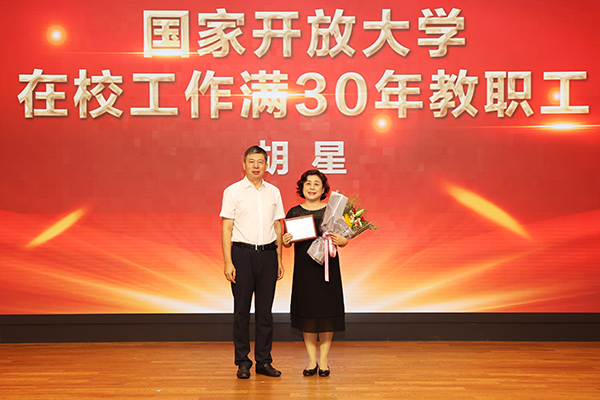 党委书记、校长荆德刚为国家开放大学在校工作满30年教职工颁奖