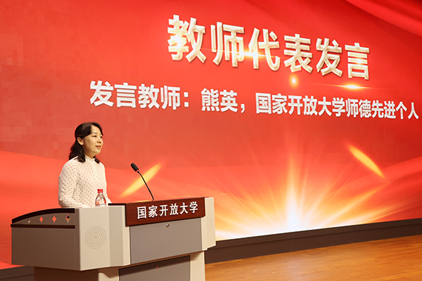 第五届北京市高等学校青年教学名师奖、国家开放大学教学技能大赛一等奖获得者赵婷婷和国家开放大学师德先进个人熊英分别从教学和师德两个角度,与大家分享了自己从教的成长经历和感悟。