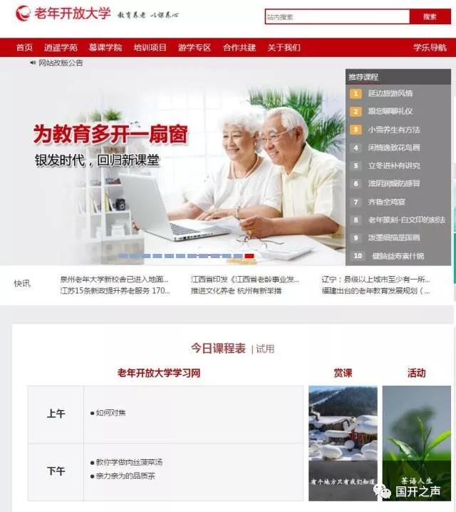 2015年1月28日,国家开放大学正式挂牌成立老年开放大学,以现代信息技术为支撑,面向老年人和养老服务从业人员开展学历和非学历教育。随后,浙江、内蒙古、北京、辽宁等10多个省市区也纷纷依托各地开放大学或广播电视大学成立老年开放大学、老干部(开放)大学以及老年大学(学院)。