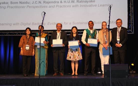 此外,国家开放大学在大会上获颁唯一的“杰出机构奖”。ICDE秘书长嘉德•泰斯托泰这样评价道:中国国家开放大学在促进教育公平、提升教育质量以及改革创新办学模式、人才培养模式、信息技术和教育的深度融合、学习成果认证积累和转换的“学分银行”建设等方面,成绩卓越,走出了一条具有中国特色的开放大学发展之路,得到了中国政府和百姓的认可和赞誉,因此特向中国国家开放大学授予此奖。