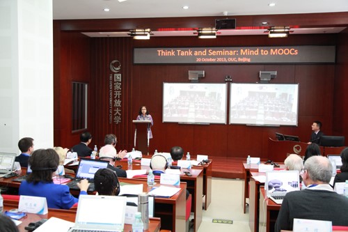 2013年10月20日,由国家开放大学承办的ICDE“大规模开放式在线课程的思考(Mind to MOOCs)”智库研讨会在北京举行。此次研讨会上ICDE执委会成员及相关国际会议代表就“大规模开放式在线课程”展开了讨论。联合国教科文组织开放教育资源事务主席及开放教育协调员Fred Mulder、欧洲电子学习质量基金会主席及MOOCs质量项目代表Ulf-Daniel Ehlers、欧洲远程电子学习网络协会副主席Alan Bruce等就MOOCs在世界不同地区的现状、重要性、影响力以及如何在高等教育中利用MOOCs等作主题发言。国家开放大学原党委副书记张少刚作了题为《MOOCs:开放大学怎么做?》的主题报告。研讨结束后,国家开放大学聘请ICDE执委、英国开放大学教授Alan Tait为数字化学习技术集成与应用工程研究中心高级顾问。