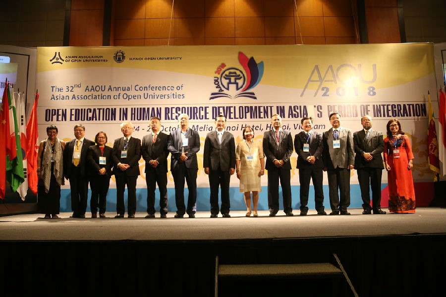 2018年10月24日至26日,第32届年会在越南河内召开,国家开放大学副校长林宇率代表团一行6人出席会议。本届年会由越南河内开放大学承办,主题为“亚洲融合时代开放教育在人力资源发展中的作用”,来自亚洲23个国家32所大学的近500名代表参加会议。与会期间,林宇副校长代表国家开放大学参加了第33届AAOU执委会和第32届AAOU全委会。国家开放大学魏芳芳、魏顺平、吴淑苹的论文《面向在线教育的学习分析云平台的构建与应用》在评选单元入围最佳实践奖,郭志军、李淑分别在平行会议上进行了论文宣讲,展示了国家开放大学在远程开放教育领域新的理念思考和技术应用,引发参会专家学者热烈地讨论并获得肯定。