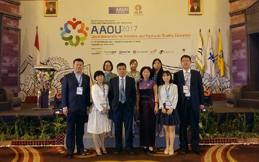 2017年9月27日至29日,第31届年会在印度尼西亚日惹召开,国家开放大学副校长李林曙率代表团一行9人出席会议。 此次年会由印度尼西亚特布卡大学承办,主题为“致力于全纳和公平优质教育的开放大学”。近300名来自亚洲各国的代表出席会议。国家开放大学孙鸿飞的论文《为农民工提供公平教育机会和灵活学习服务》、殷双绪的论文《中日两国开放大学外部质量评价比较研究》、杨敏的论文《国家开放大学少数民族学生的教育公平与效率》、李志香的论文《远程教育移动学习模式研究》、孙志娟的论文《中国产业工人远程教育模式研究》、江小青的论文《导学教师现状的研究》分别在平行会议上进行了宣讲和交互。与会期间,李林曙副校长还参加了第32届AAOU执委会和第31届AAOU全委会。