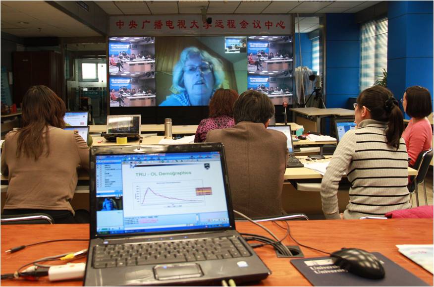 2012年9月14日,“OUC-TRU 2012年度会议暨学分银行项目视频研讨会”召开。国家开放大学副校长李林曙、党委副书记张少刚、汤姆逊大学国际合作副校长维斯•克斯卡博士、远程教育副校长高登•塔斯维尔博士等人员出席了本次视频研讨会。