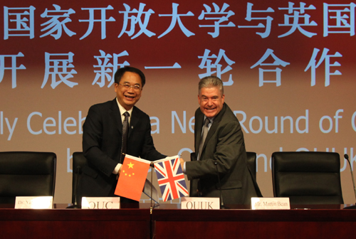 2013年5月9日,国家开放大学与OUUK签署了战略合作备忘录。根据该备忘录,双方将共同探讨基于现代信息技术的远程开放教育未来发展趋势,在办学能力建设、教学资源建设、师资培训及学术交流等方面加强合作。