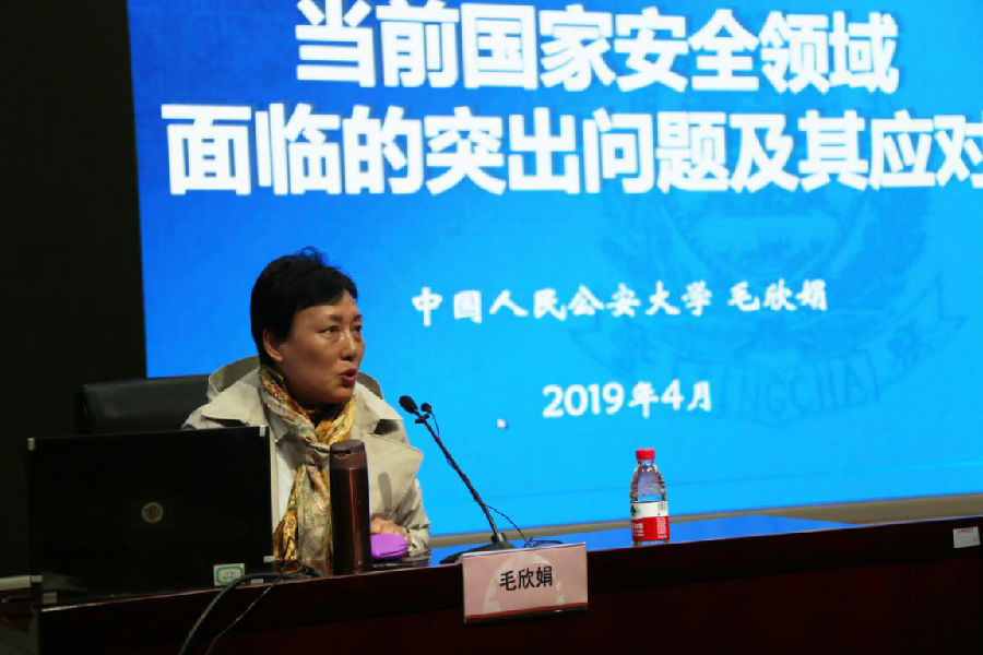 全国公安系统优秀教师、北京市教学名师、中国人民公安大学侦查与反恐怖学院博士生导师毛欣娟教授为本次活动带来以“当前国家安全领域面临的突出问题及其应对”为题的安全教育报告。报告中,毛欣娟教授就国家安全领域面临的问题从历史原因、世界形势等多角度进行了分析,她结合习近平总书记在全国高校思政会议上的讲话精神,向学生明确了维护国家安全、提高安全意识的重要性,并为高校安全教育工作的开展方式提出建议。