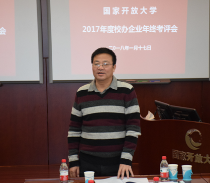 2018年1月17日下午,国家开放大学2017年度校办企业年终考评会在五棵松办公楼1214会议室召开。李凌书记、杨孝堂副书记、亓彦伟副校长出席会议,校国资委委员、考核工作组成员、校办企业主要负责人及企业代表共40余人参加会议。会议由资产管理公司总经理孙艳萍主持。