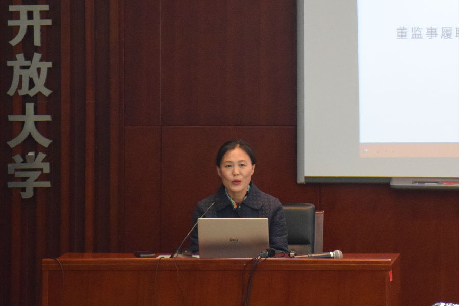 国家开放大学纪检监察部/审计部部长李睿卿、财务部部长陈海山分别作了题为《严守纪律底线坚持廉洁从业》、《从财务视角看董监事履职》的讲座。