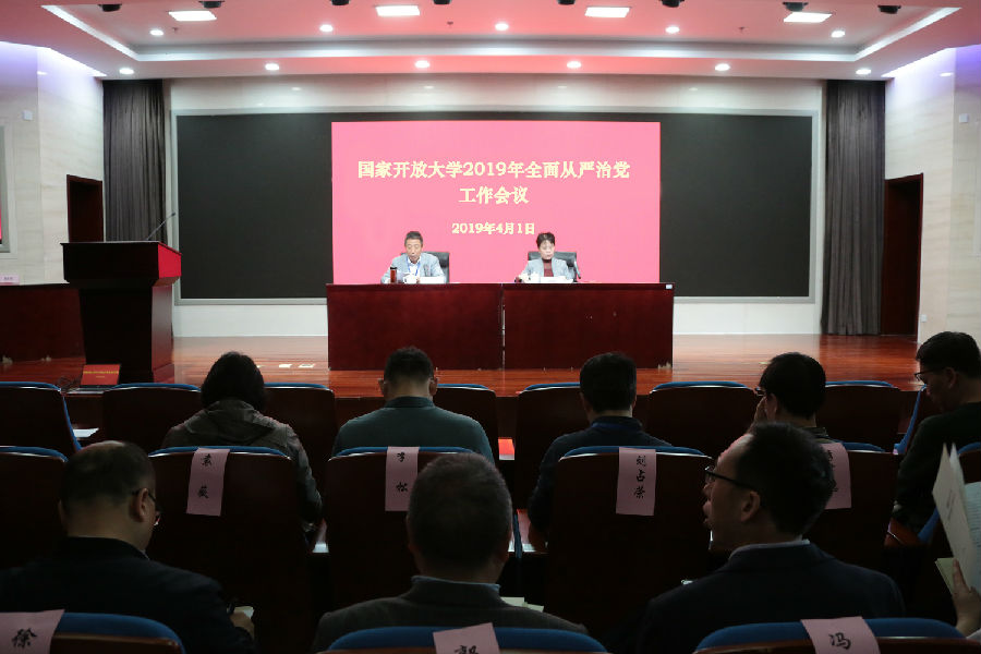 为深入学习贯彻落实习近平总书记在十九届中央纪委三次全会上的重要讲话和全会精神以及2019年教育系统全面从严治党工作视频会议精神,4月1日,国家开放大学召开2019年全面从严治党工作会议。国家开放大学党委副书记刘臣同志和党委副书记、纪委书记刘向虹同志出席会议,全体中层干部和校办企业主要负责人参加会议。
