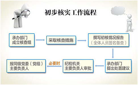 初步核实——指纪检机关对受理的党员或党组织违纪行为的线索进行初步核查、证实的活动,其任务是了解问题线索是否存在,为立案与否提供依据。