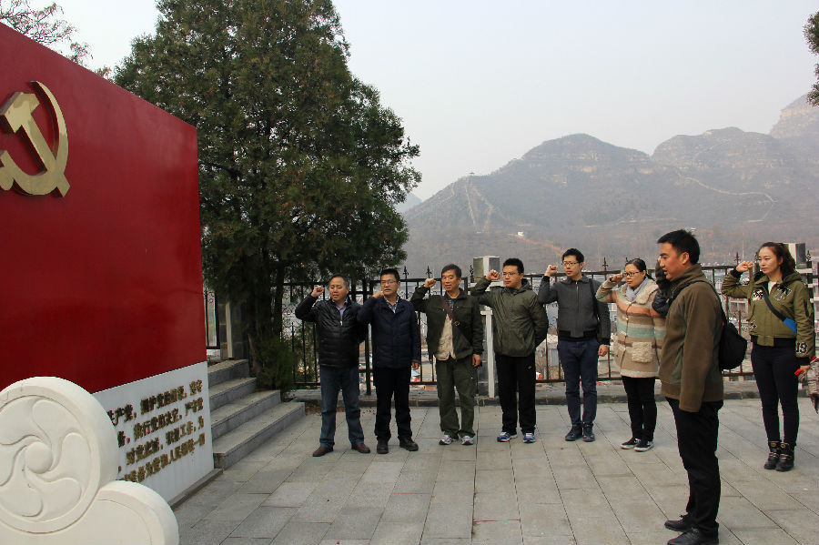 大家瞻仰了平西烈士陵园,在纪念碑前面向党旗重温了誓词