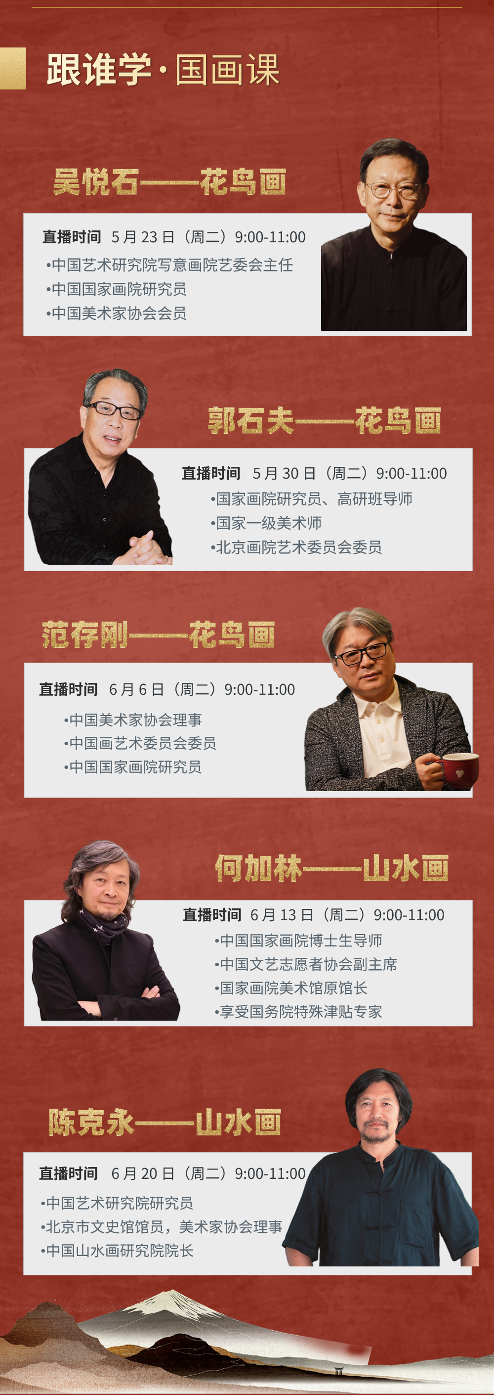 5月23日,国家开放大学面向全体系开展“艺术名家美育系列活动”,推出大型美育项目“艺术名家课”,并于国家开放大学各学习终端及人民网、中国网、学习强国、央视频、人民康养微博号等平台隆重上线。中国艺术研究院写意画院艺委会主任、中国国家画院研究员吴悦石的“最美写意画”将于5月23日上午9点首讲。